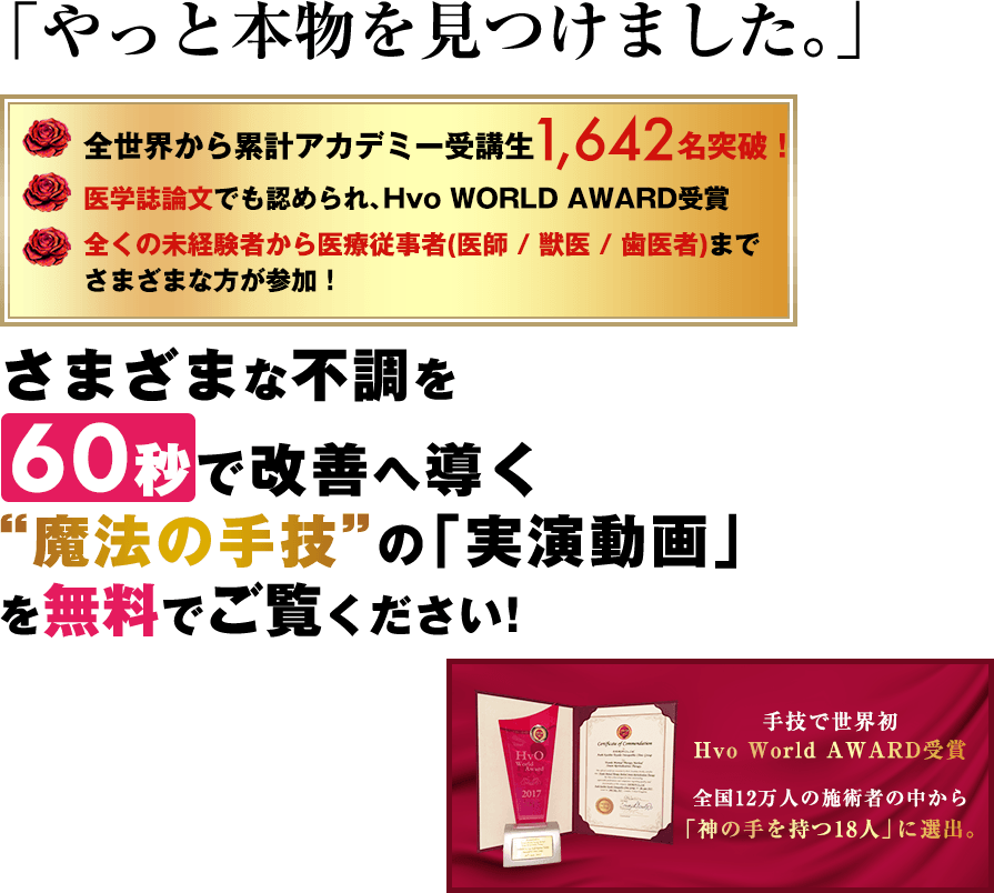 その劇的な効果とあまりのあっけなさに、「魔法を使ったんですか?」と患者様に驚かれることは間違い無いでしょう。